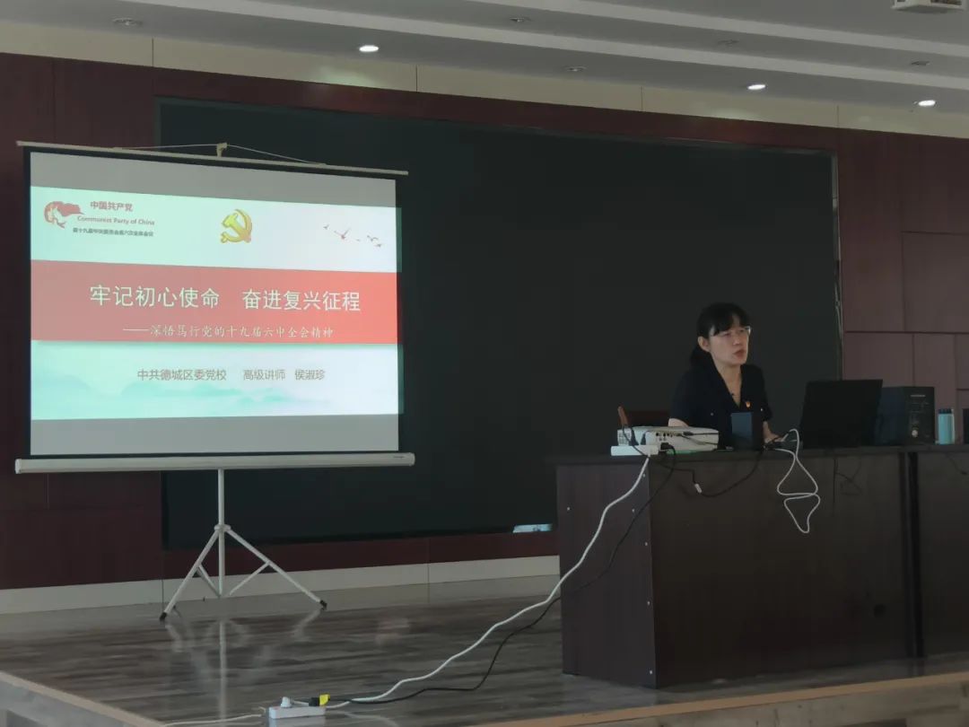 培訓(xùn)中,候淑珍老師詳細(xì)講解《牢記初心使命 奮進(jìn)復(fù)興征程—深悟篤行黨的十九屆六中全會精神》。她指出,黨的十九屆六中全會是在我們黨成立100周年的重要?dú)v史時(shí)刻和"兩個(gè)一百年"奮斗目標(biāo)交匯的重大歷史關(guān)頭召開的一次重要會議,對于在建黨百年歷史背景下開啟多面建設(shè)社會主義現(xiàn)代化國家新征程,在新時(shí)代更好堅(jiān)持和發(fā)展中國特色社會主義,具有重要里程碑意義。全會立足黨和國家事業(yè)發(fā)展大局,把百年建黨的光榮歷史、光輝歷程,同對黨和國家事業(yè)發(fā)展的深邃思考高度結(jié)合起來,把我們黨對共產(chǎn)黨執(zhí)政規(guī)律、社會主義建設(shè)規(guī)律、人類社會發(fā)展規(guī)律的認(rèn)識,同我們奮進(jìn)新征程、建功新時(shí)代、奪取新勝利的使命擔(dān)當(dāng)緊密結(jié)合起來,深刻揭示了"過去我們?yōu)槭裁茨軌虺晒?,未來我們怎樣才能繼續(xù)成功,對推動全黨進(jìn)一步統(tǒng)一思想、統(tǒng)一意志、統(tǒng)一行動,團(tuán)結(jié)帶領(lǐng)全國各族人民奪取新時(shí)代中國特色社會主義偉大勝利,具有重大現(xiàn)實(shí)意義和深遠(yuǎn)歷史意義。