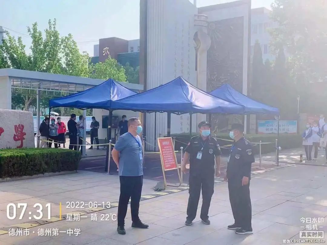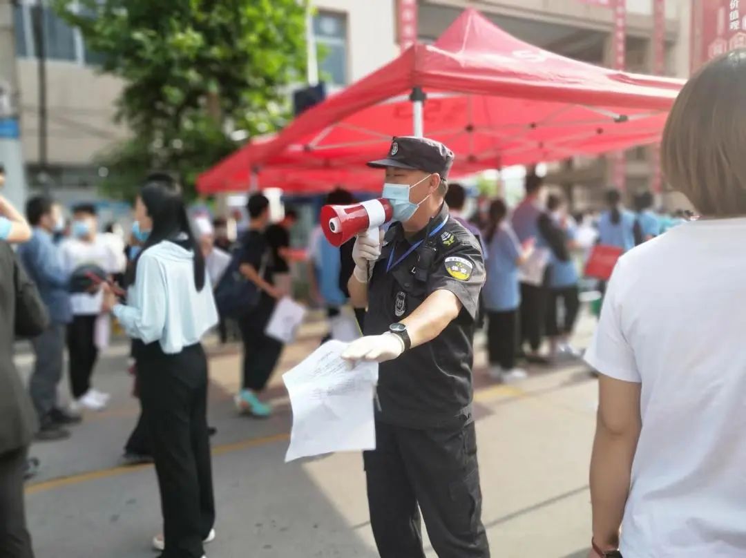 期間,各考點(diǎn)安保負(fù)責(zé)人趙洪臣、孫輝國、邱洪冰、賈義軍、候佃榮等主管領(lǐng)導(dǎo)及執(zhí)勤隊(duì)員一早提前到達(dá)崗位,配合現(xiàn)場工作人員做好證件查驗(yàn),嚴(yán)禁無關(guān)人員混入考場,同時防止人員擁堵、讓考生安全。并積較協(xié)助公安機(jī)關(guān)通過定點(diǎn)執(zhí)勤和動態(tài)巡邏相結(jié)合的方式,對轄區(qū)內(nèi)各考點(diǎn)及周邊開展巡邏,引導(dǎo)學(xué)生有序入場,維護(hù)考場周邊秩序,讓考生進(jìn)場安全暢通。