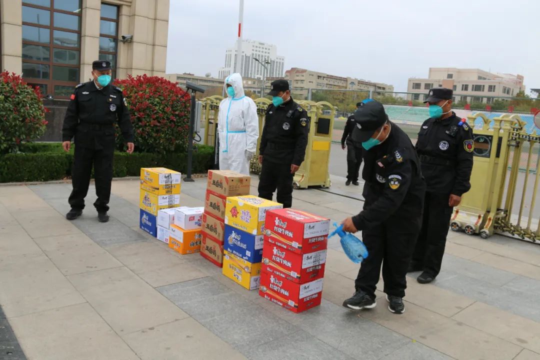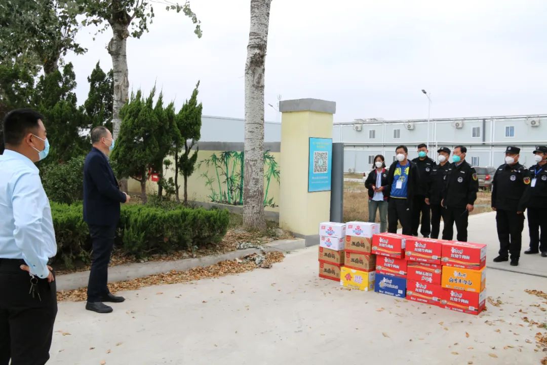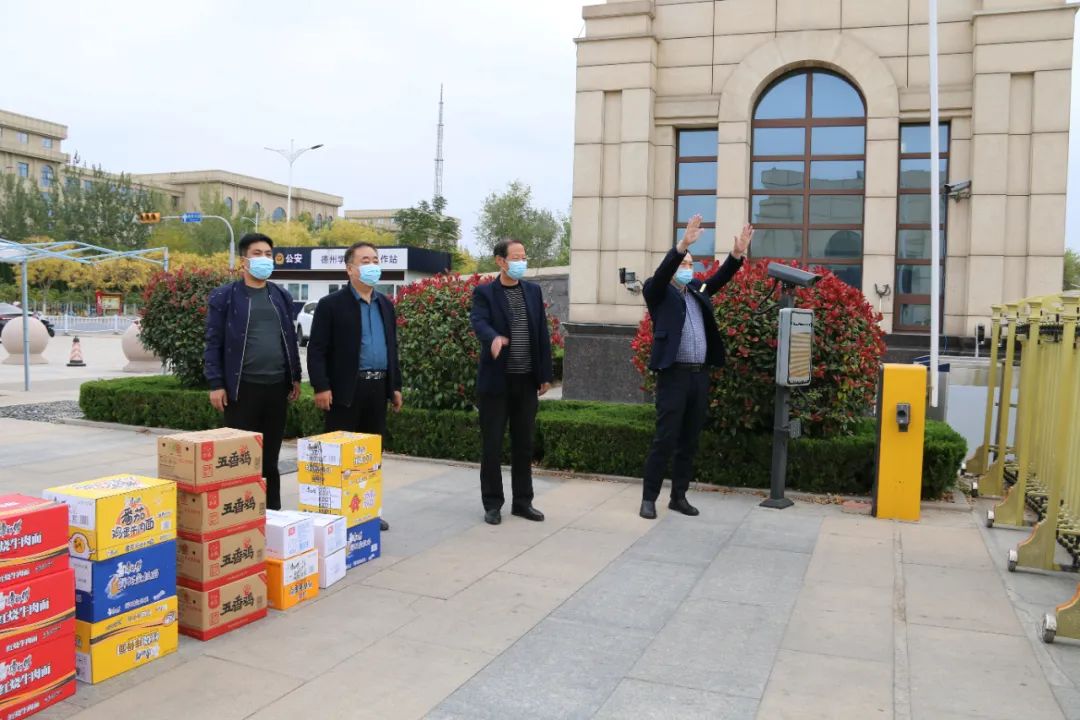 王新衛(wèi)一行先后到方艙醫(yī)院、德州學院,為一線安保人員送去扒雞、方便面、火腿等生活物資,并對他們的辛勤工作和默默奉獻表示敬意。