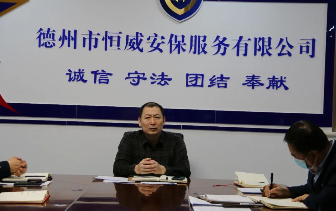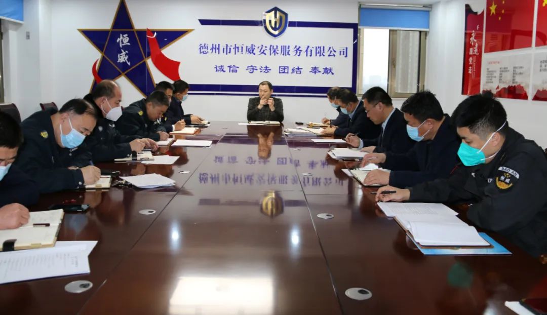 2月9日,德州市恒威安保服務(wù)有限公司召開工作會(huì)議,會(huì)議由公司黨支部書記、總經(jīng)理王新衛(wèi)主持,各部門負(fù)責(zé)人參加。