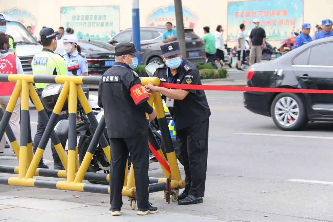 7:40,保安員積較協(xié)助公安機(jī)關(guān)在考場(chǎng)外劃設(shè)安全區(qū)域,拉設(shè)安全警戒帶,現(xiàn)場(chǎng)疏導(dǎo)群眾、讓考生順暢、安全入場(chǎng)。隊(duì)員們各司其職、履職盡責(zé),考點(diǎn)學(xué)子有序進(jìn)入,校門口秩序井然。