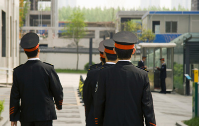 ?。?)保安人員對(duì)客戶單位出入口進(jìn)行把守、驗(yàn)證、檢查,保衛(wèi)客戶安全。