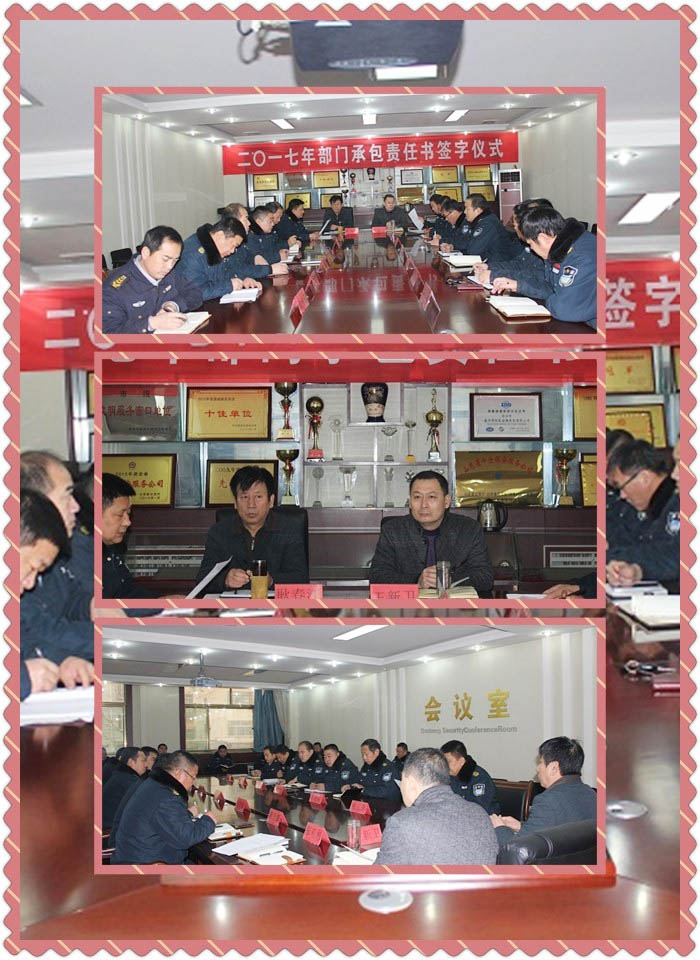 會議進(jìn)行三項內(nèi)容,一簽訂目標(biāo)責(zé)任書。大隊與各中隊分別簽訂2017年目標(biāo)責(zé)任書,通過簽訂目標(biāo)責(zé)任書強化中隊的責(zé)任、明確目標(biāo)方向,提升了人員的積極性,為實現(xiàn)明年工作任務(wù)打下基礎(chǔ)。二實行獎懲機制,加強隊伍建設(shè),促進(jìn)業(yè)務(wù)發(fā)展。根據(jù)今年完成目標(biāo)任務(wù)情況,大隊采取獎懲辦法,對任務(wù)目標(biāo)完成好的中隊長及班長進(jìn)行升職加薪,有力的提高了大家的工作積極性,為今后的業(yè)務(wù)拓展奠定了堅實的基礎(chǔ)。三大隊全年工作的總結(jié)。總結(jié)會上,王經(jīng)理充分肯定了2016年二大隊的工作成績。他指出二大隊全年圍繞保安市場,堅持主業(yè)為主、多種經(jīng)營方式并存的發(fā)展模式,不斷拓寬保安市場,取得了可喜可賀的成績。在隊伍建設(shè)上,規(guī)范機構(gòu)設(shè)置,分工明確,各負(fù)其責(zé)。另外不斷加強隊員崗前培訓(xùn),崗中教育指導(dǎo),著實提升了隊伍的“外在形象、內(nèi)在素質(zhì)”。同時也著重分析了存在的問題和不足。他說2017年我們要圍繞主業(yè),進(jìn)一步放大優(yōu)勢,再接再厲,率先發(fā)展,抓好隊伍、帶好班子,適應(yīng)新形勢,保持清醒頭腦,克服慣性思維,增強創(chuàng)新,優(yōu)化主業(yè),強化他業(yè),推動業(yè)務(wù)、隊伍提檔升級,實現(xiàn)雙贏的局面。