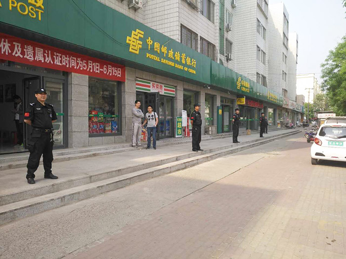 “五一”期間,人防二大隊(duì)科學(xué)制定臨時(shí)勤務(wù)預(yù)案,縝密統(tǒng)籌部署,本著“樹形象、立標(biāo)桿、見成效、奪口碑”的標(biāo)準(zhǔn),在讓客戶單位安全渡過“五一”小長假的前提下,抽調(diào)精干隊(duì)員圓滿完成了星凱國際廣場(chǎng)二期開盤、萬達(dá)金街慶典、郵政網(wǎng)點(diǎn)離退休人員認(rèn)證等勤務(wù)活動(dòng)。共計(jì)出動(dòng)勤務(wù)63人次,郵政網(wǎng)點(diǎn)的勤務(wù)還在進(jìn)行中。恒威安保保安隊(duì)員用熱心、愛心和高素質(zhì)的勤務(wù)形象贏得了客戶單位和廣大市民群眾的贊譽(yù)。