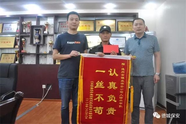 8月28日上午,山東華魯恒升集團(tuán)德州熱電有限責(zé)任公司安保部段主任在派駐保安執(zhí)勤班班長王清池的陪同下,來到德州市恒威安保服務(wù)有限公司,感謝在8.17特大暴雨中及時(shí)排除重大險(xiǎn)情的三名保安隊(duì)員。贈(zèng)送“一絲不茍、認(rèn)真負(fù)責(zé)”錦旗一面、表揚(yáng)信一封。
