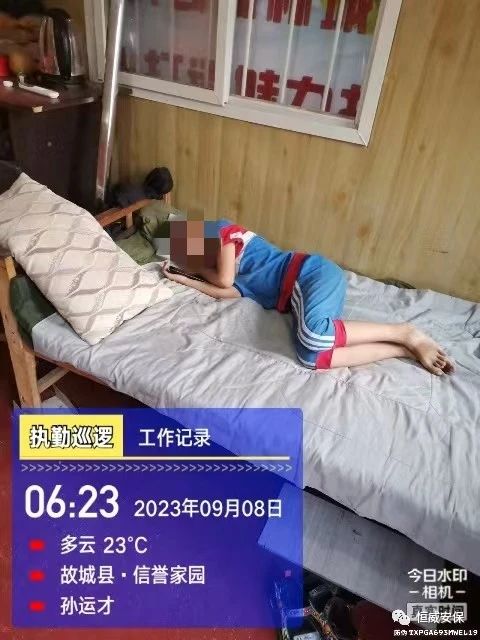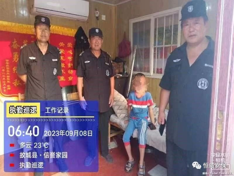 事情發(fā)生在2023年9月7日晚23點16分,恒威安保駐信譽家園執(zhí)勤班組在巡邏過程中,發(fā)現(xiàn)一名7歲的小孩獨自在小區(qū)內(nèi)行走,便上前詢問,得知孩子找不到回家的路也記不得家長的電話,巡邏隊員便把孩子帶到值班門崗,陪伴在孩子身旁,不停地安慰孩子,同時在小區(qū)業(yè)主群內(nèi)發(fā)布尋找孩子家屬的信息,一直到凌晨1點仍然沒聯(lián)系到孩子的家長,于是保安隊員將自己臨時休息的單人床讓給孩子休息,隊員們則輪流值班陪伴在他身旁。