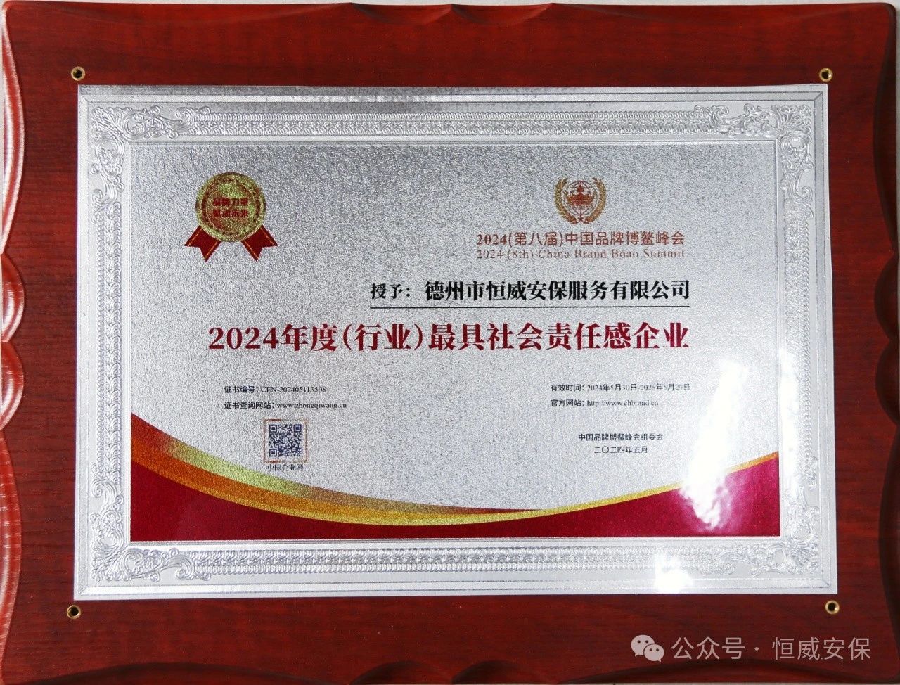 會上,經(jīng)過中國品牌峰會組委會的嚴格篩選,德州市恒威安保服務(wù)有限公司憑借其卓越的服務(wù)質(zhì)量和深厚的社會責任感,榮獲“2024年度(行業(yè))最具社會責任感企業(yè)”稱號。這是對恒威安保在公共安全領(lǐng)域的卓越貢獻和持續(xù)的社會責任實踐方面所取得成績的高度肯定,也是對其未來發(fā)展的熱切期待。