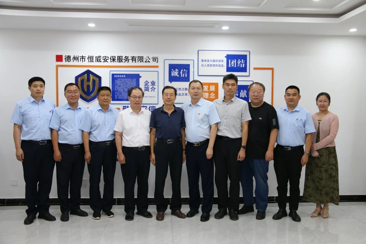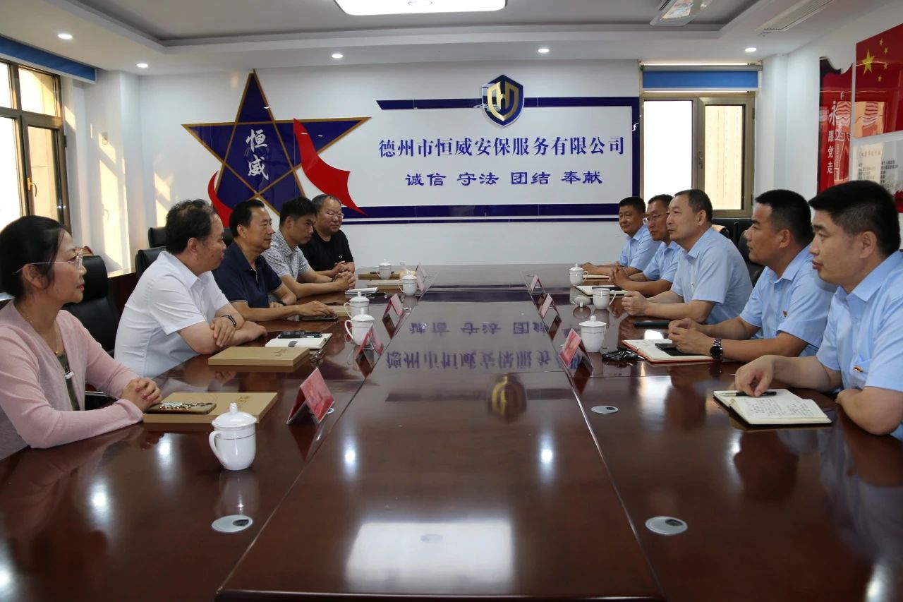 7月9日下午,德州市誠信文化建設(shè)團(tuán)隊(duì)蒞臨德州市恒威安保服務(wù)有限公司調(diào)研并指導(dǎo)工作。山東誠信文化和綠色發(fā)展主題系列電影總策劃總制片人、德州市發(fā)改委原二級調(diào)研員高洪玉,德州市發(fā)改委信用科科長李佳林,德州市誠信文化促進(jìn)會(huì)常務(wù)副會(huì)長、德州學(xué)院教授、文化學(xué)者黃金元,知名編劇、德州市電影家協(xié)會(huì)主席劉曉東,德州市誠信文化促進(jìn)會(huì)秘書長,德州市電影家協(xié)會(huì)秘書長王玉心。公司黨支部書記、總經(jīng)理王新衛(wèi)、副總經(jīng)理王洪林、高印東陪同調(diào)研。