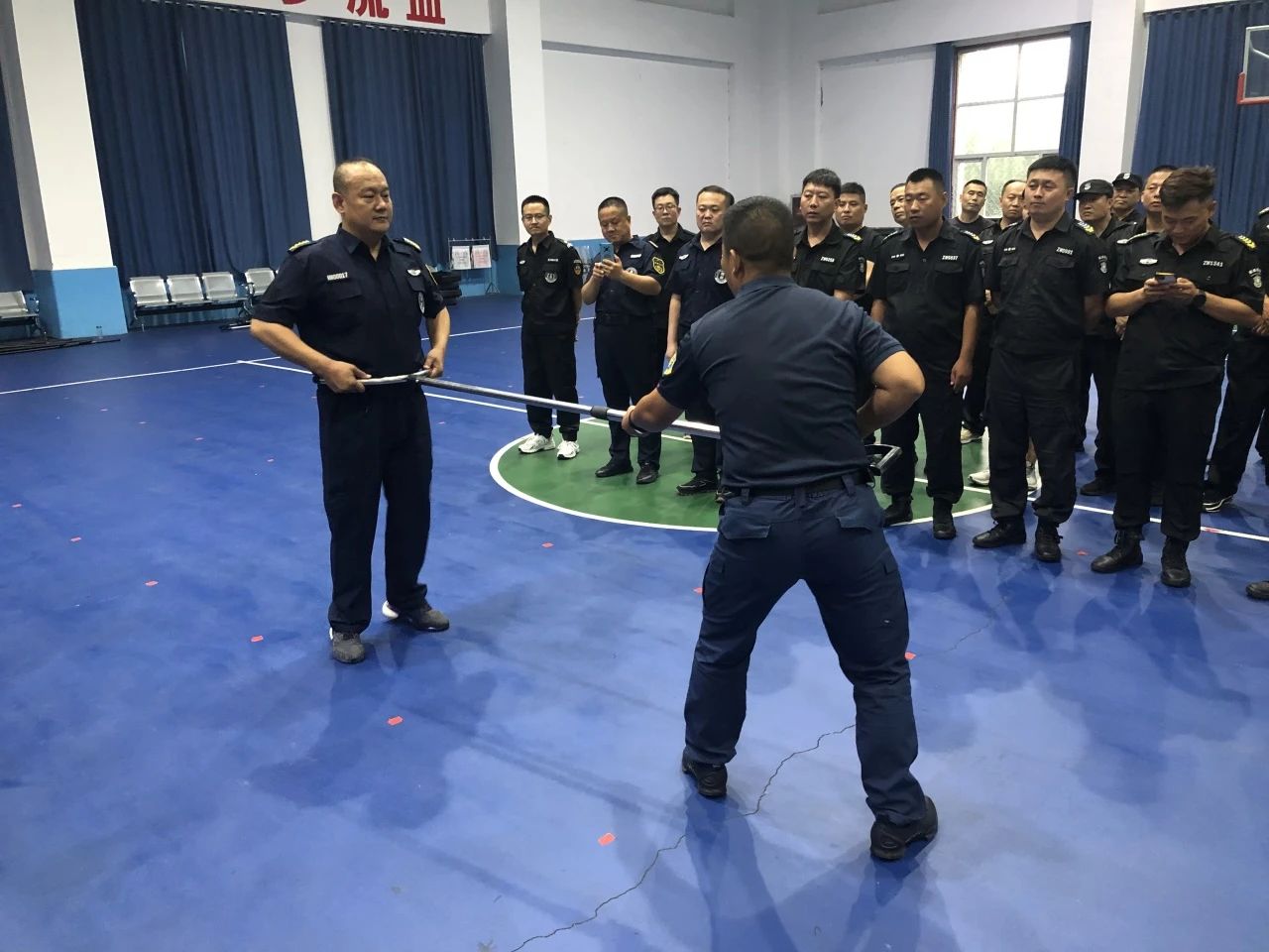本次培訓(xùn)重點(diǎn)圍繞突發(fā)事件應(yīng)急處置展開(kāi),邀請(qǐng)德州市警察學(xué)校教官進(jìn)行現(xiàn)場(chǎng)授課,詳細(xì)講解了長(zhǎng)棍、盾牌、鋼叉等防暴器材的使用要領(lǐng)和注意事項(xiàng),演示了防暴器材在實(shí)戰(zhàn)中的正確使用方法和技巧及最小作戰(zhàn)現(xiàn)場(chǎng)處置專項(xiàng)訓(xùn)練,課程中對(duì)保安員徒手應(yīng)急方位,現(xiàn)場(chǎng)緊急救護(hù)技術(shù),警保聯(lián)勤聯(lián)動(dòng)現(xiàn)場(chǎng)處置做了詳細(xì)解說(shuō)及演示。