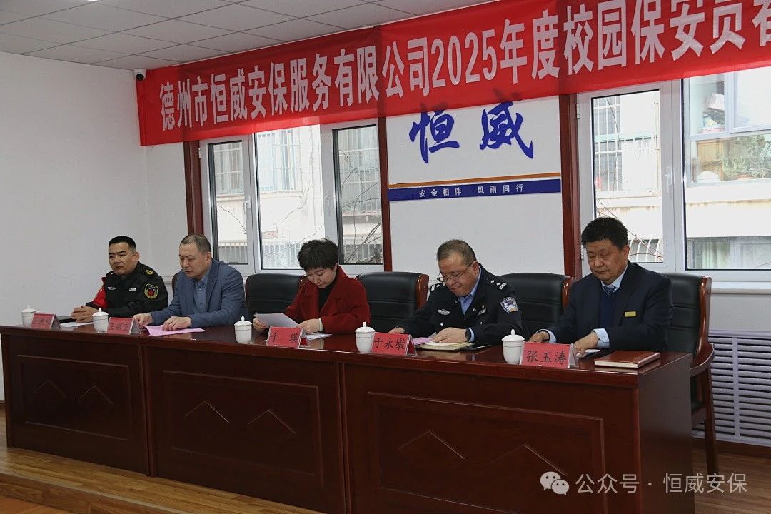 為進(jìn)一步提升校園安全防范能力,筑牢師生安全屏障,2月28日下午,德州市恒威安保服務(wù)有限公司2025年度校園保安員春季專題培訓(xùn)開班儀式隆重舉行。區(qū)教體局副局長于瑛、區(qū)公安分局治安大隊(duì)大隊(duì)長于永墩、德州市恒威安保服務(wù)有限公司總經(jīng)理王新衛(wèi)等領(lǐng)導(dǎo)出席儀式,來自全區(qū)各中小學(xué)、幼兒園的60余名校園保安員代表參加活動(dòng)。會(huì)議由公司副總經(jīng)理張玉濤主持。