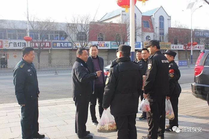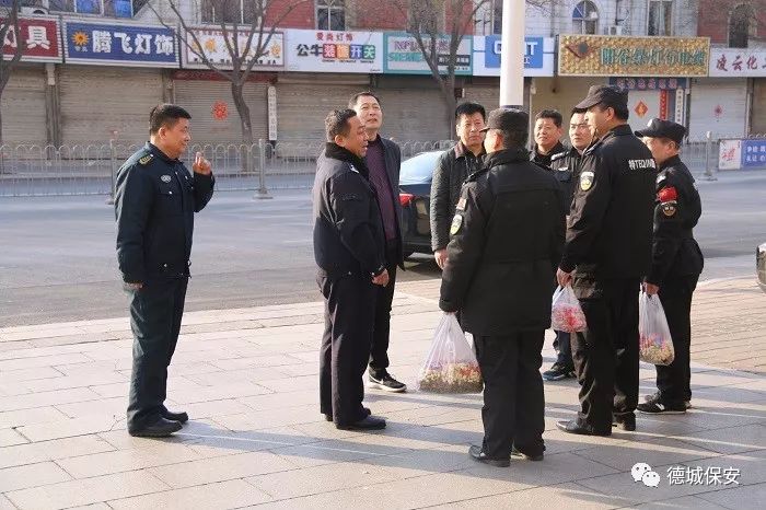 爆竹聲聲喜報前程似錦,梅花朵朵歡呼萬象更新。2.15號,臘月三十,德城公安分局黨委成員、副局長井站文攜恒威安保服務(wù)有限公司領(lǐng)導班子成員分赴安保一線進行督導、慰問,向春節(jié)期間堅守在安保一線的同志們送去節(jié)日的問候和祝福。
