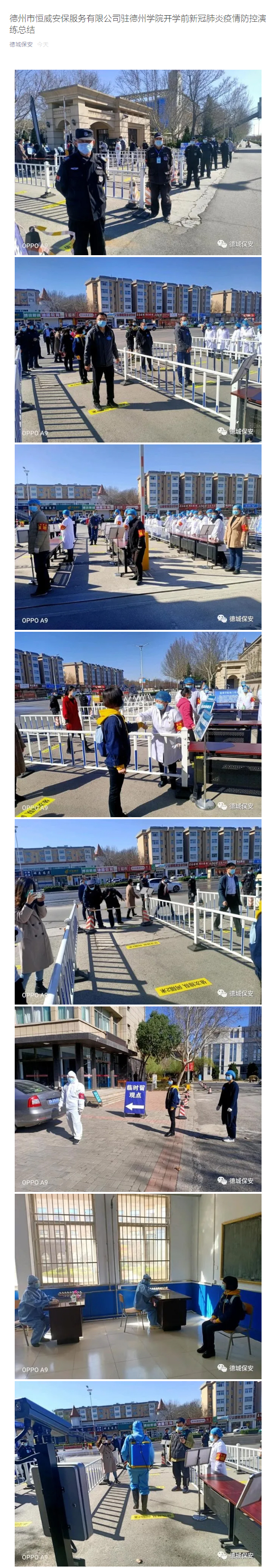 為進一步規(guī)范校園新冠肺炎疫情防控工作,提升學校應對突發(fā)疫情的應急指揮能力和組織協(xié)調(diào)能力,切實保障師生的健康安全,根據(jù)相關(guān)文件要求,3月19日上午,德州市恒威安保服務有限公司駐德州學院安保部門與校方組織舉行新冠肺炎防控應急模擬演練。具體情況如下: